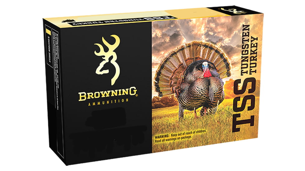 Browning Ammo B193924139 TSS Tungsten 410 Gauge 3″ 13/16 oz 9 Shot 5 Bx/ 10 Cs – Browning’s TSS Tungsten Turkey gives hunters a new edge in the field. Loaded with the densest shot available and offered in duplex payloads, turkeys out to 70 yards don’t stand a chance. Nearly 60% denser than lead for more energy and heavy impact.
